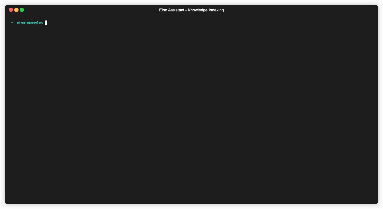 cd xxx/eino-examples/quickstart/eino_assistant # 进入 eino assistant 的 example 中 # Modify the required environment variables in .env (LLM information, trace platform information) source .env # As the example Markdown file is stored in the cmd/knowledgeindexing/eino-docs directory, and the code specifies the relative path eino-docs, you need to run the command in the cmd/knowledgeindexing directory cd cmd/knowledgeindexing go run main.go -